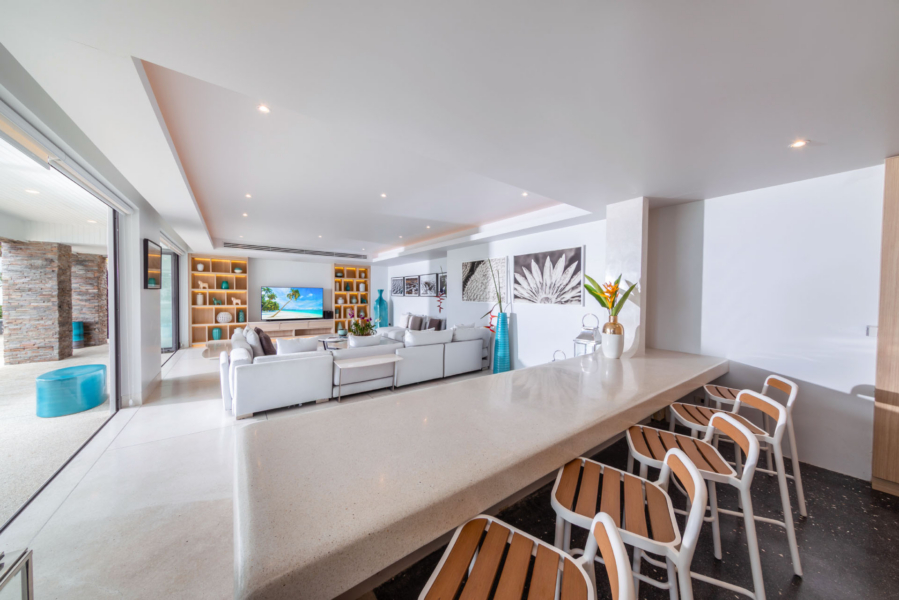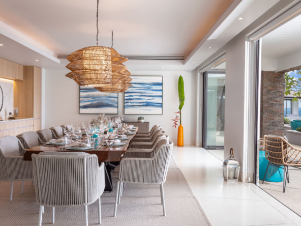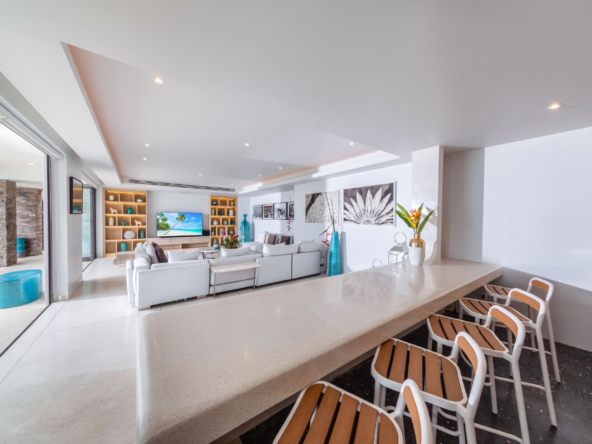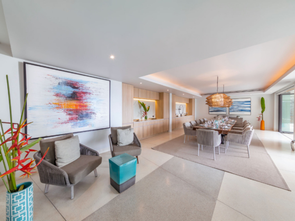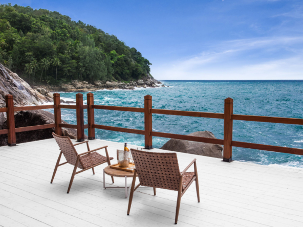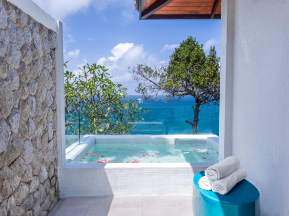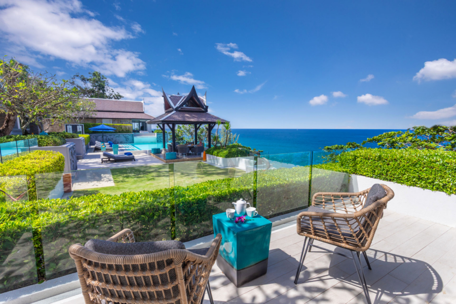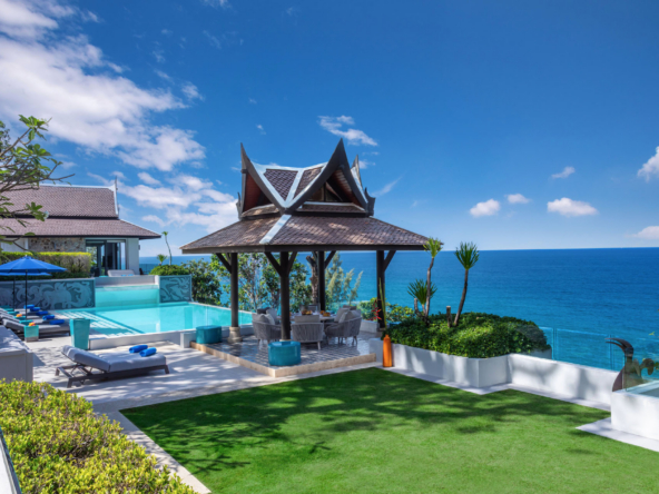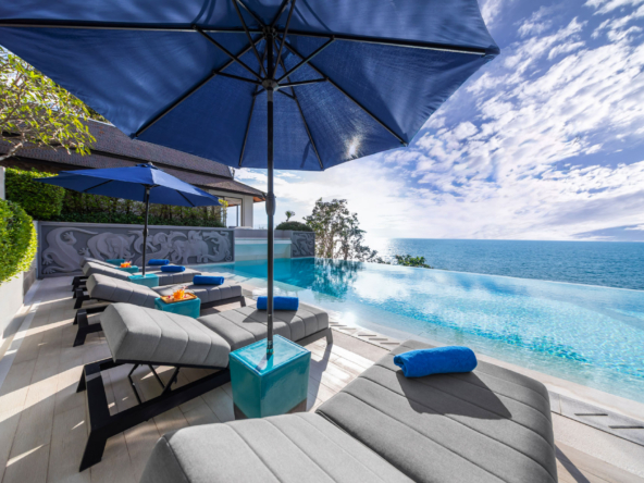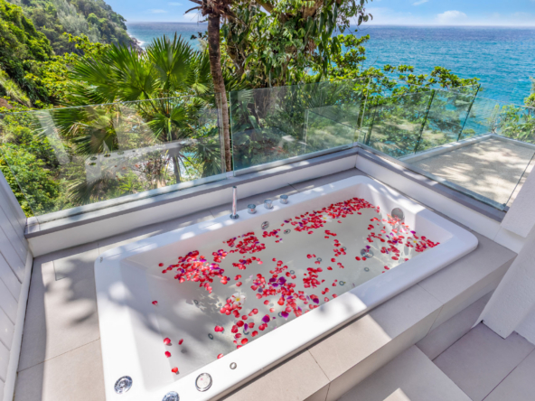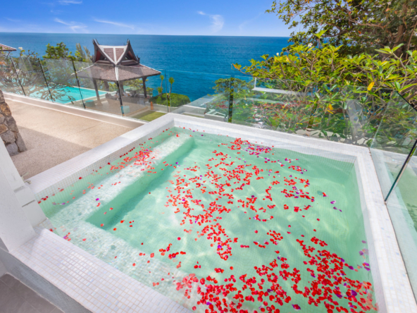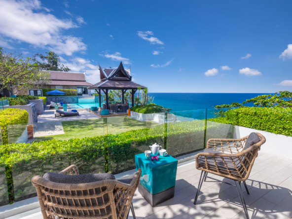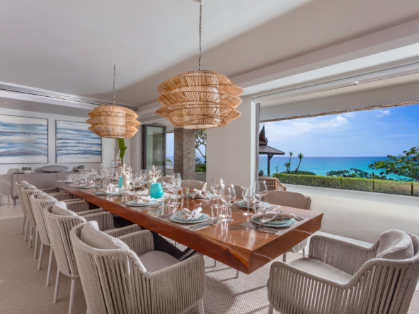 Guests have the option to prepare their own meals in the villa’s fully equipped kitchen or indulge in the services of a professional chef. The Thai-style sala and seaside terrace are ideal for alfresco dining, while the indoor and outdoor dining areas comfortably seat up to 14 people, making it perfect for gatherings.