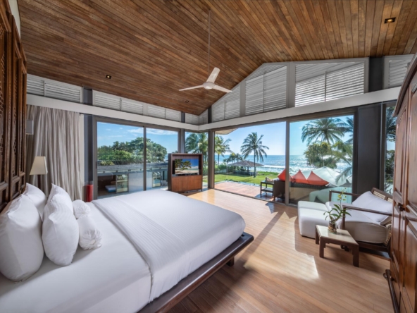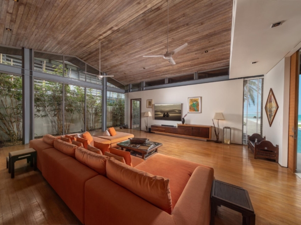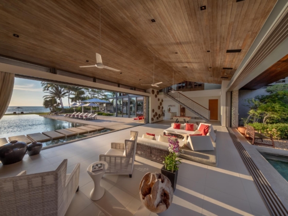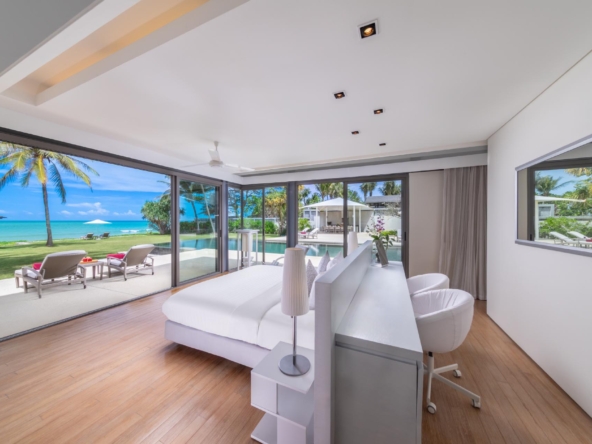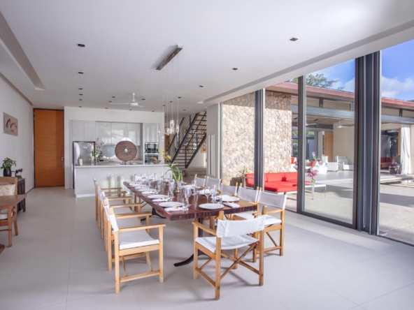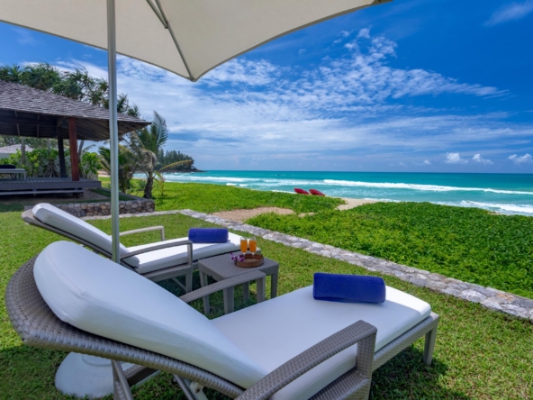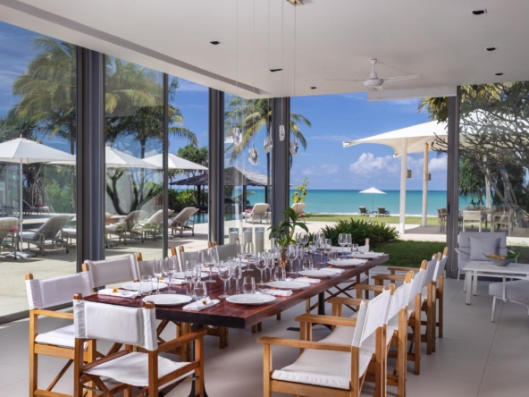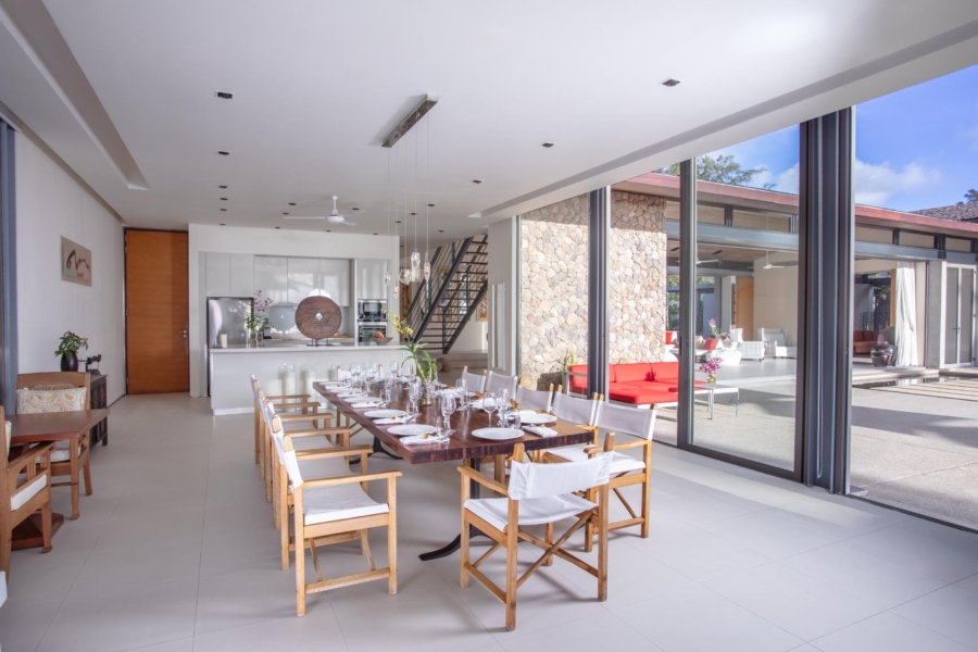 With accommodation for up to 12 guests, Villa Malee Sai is ideal for large groups or families seeking a luxurious beachfront escape. The open-plan living area is spacious and inviting, with expansive windows that provide breathtaking views of the surrounding landscape. Dining spaces are available both indoors and outdoors, with views complimented by the delightful specialties of the villa’s private chef.