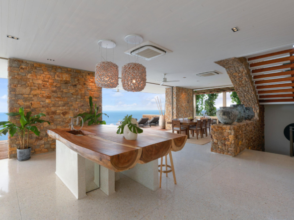 Step indoors to find a soothing retreat crafted to let the cool sea breeze move effortlessly through each space. Every room and open-plan living area faces the villa’s lush tropical surroundings and the glittering water beyond, blurring the boundaries between inside living and the natural world.