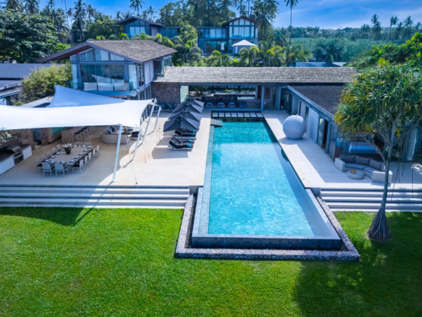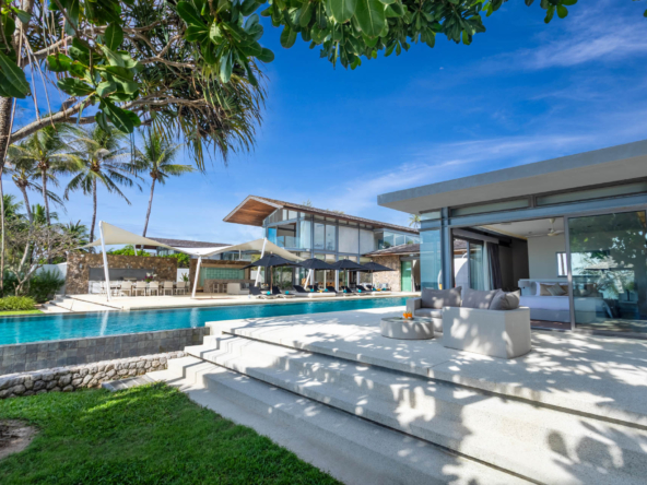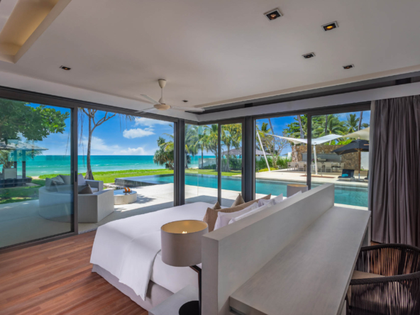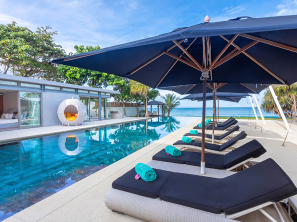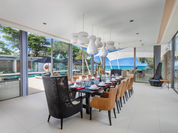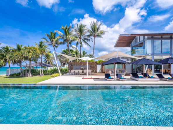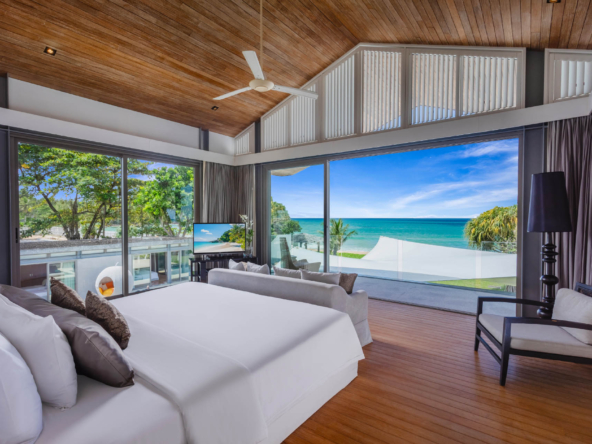 Villa Tievoli is a stunning 7-bedroom beachfront retreat located in Phang Nga, offering panoramic views of the sparkling Andaman Sea and direct private access to Natai Beach. This luxurious haven is set in a peaceful, beachfront environment, making it the ideal getaway for extended families, couples, wedding parties, or anyone seeking ample space, world-class amenities, and complete freedom.