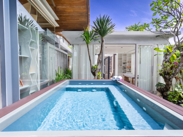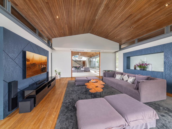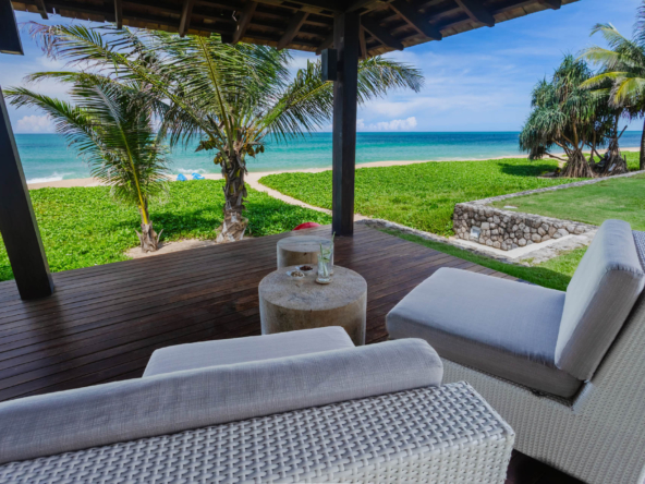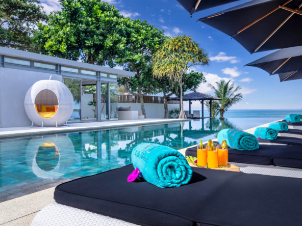 The villa’s centerpiece is a 25-meter infinity pool that seems to flow directly into the ocean, providing a mesmerizing view that blends seamlessly with the natural surroundings. Next to the pool is the al fresco BBQ area, a fully stocked bar with comfortable stools, and a cozy open pavilion for lounging.
